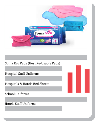 Soma Eco Pads and Uniforms is a Somalia Based women owned Company that seeks to provide reusable sanitary pads, uniforms and bedding for Hospitals, Hotels, public and private agencies/companies. Our products are locally manufactured, and the idea behind this is to bring to the market products which are affordable, environmental friendly and re-usable products with a cultural sensitivity and create employment for Somali women and youth.